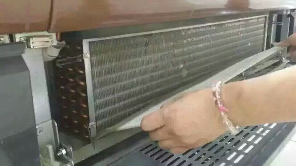 2、冷柜在使用一段时间后下面冷凝器上面就会沉淀一些灰尘,久而久之就会影响风幕柜散热,所以冷凝器最少得一个月搽拭一次。搽拭时要用刷子轻轻的上下刷,防止划伤冷凝器